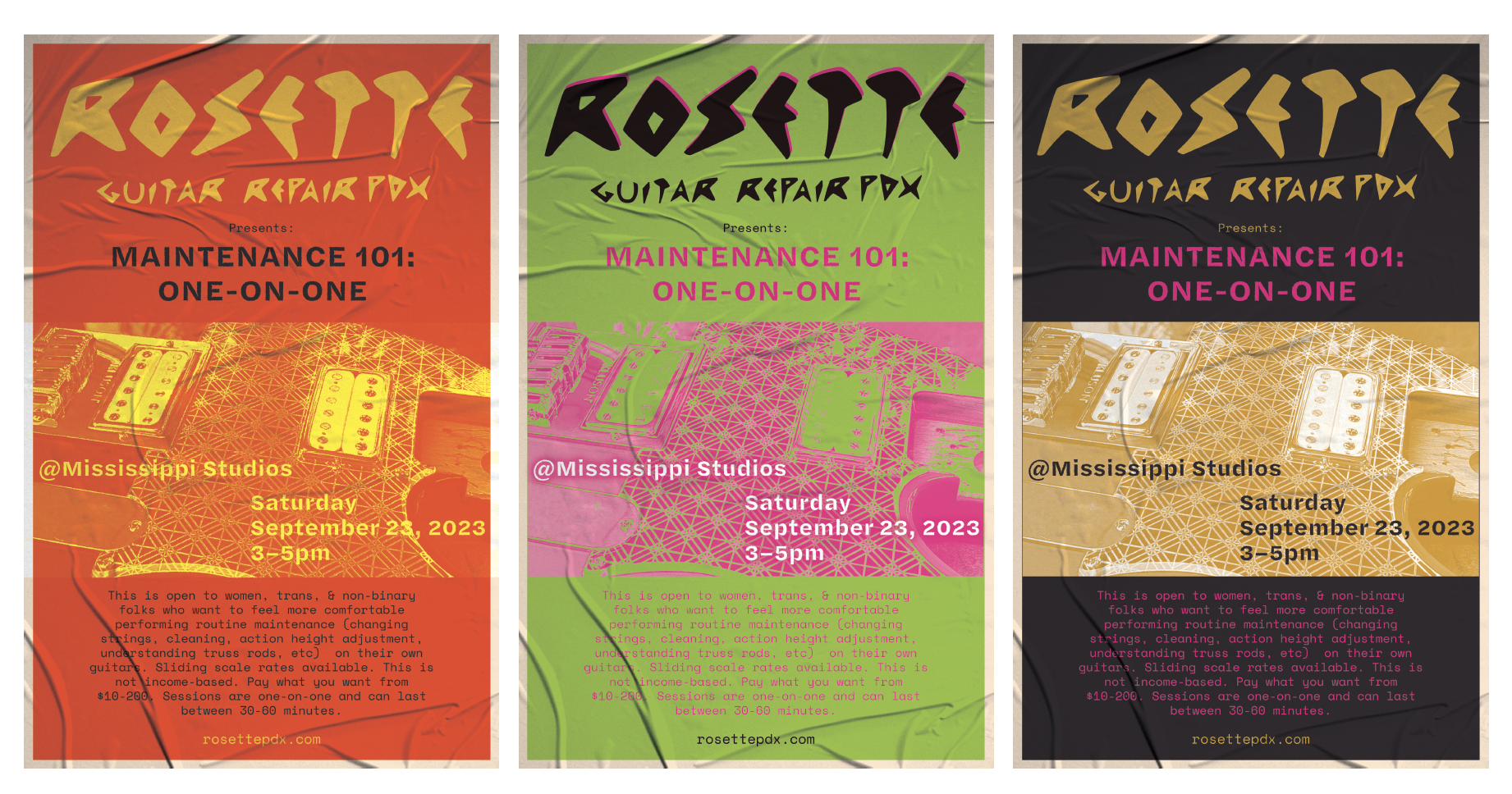 Instagram photos by Loren (@queerluthier) of Rosette Guitar Repair PDX